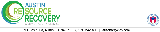 Austin Resource Recovery provides a wide range of services designed to transform waste into resources while keeping our community clean. Services include curbside collection of recycling, trash, yard trimmings and large brush and bulk items; street sweeping; dead animal collection; household hazardous waste disposal and recycling; and outreach and education. Austin Resource Recovery offers free, voluntary, and confidential consulting services to help Austin businesses reduce waste and comply with the City’s recycling ordinances. In December 2011, the Austin City Council approved the Austin Resource Recovery Master Plan, which is the City’s roadmap to Zero Waste. The City of Austin is committed to reducing the amount of waste sent to area landfills by 90 percent by 2040.