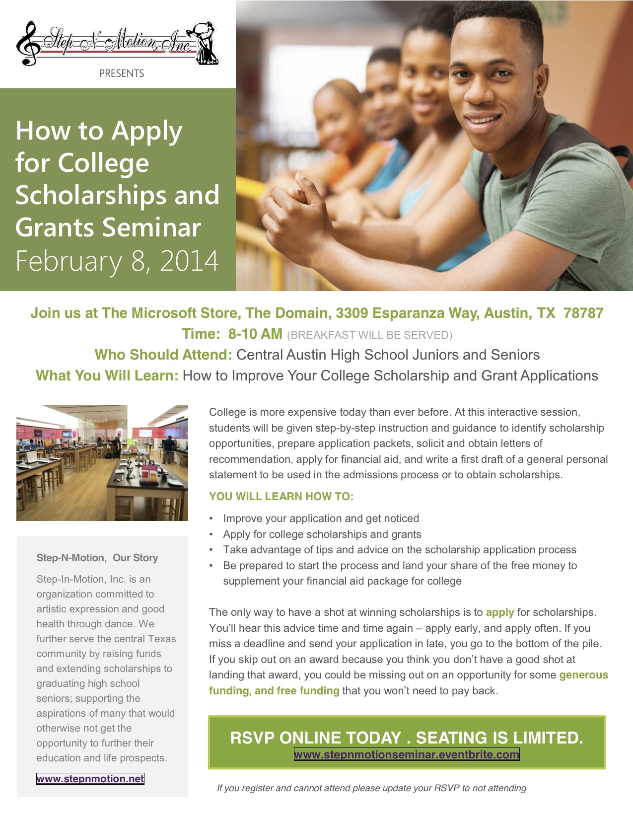 · Event: How to Apply for College Scholarships and Grants Seminar