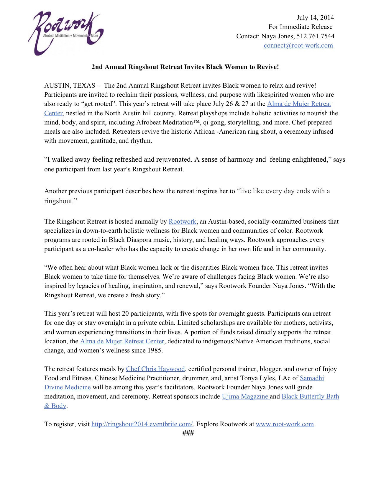 Uncategorized2nd Annual RingShout Retreat For Black Women 2014 Share this: Click to share on X (Opens in new window) X Click to share on Facebook (Opens in new window) Facebook More Click to share on Pinterest (Opens in new window) Pinterest Like Loading... Related