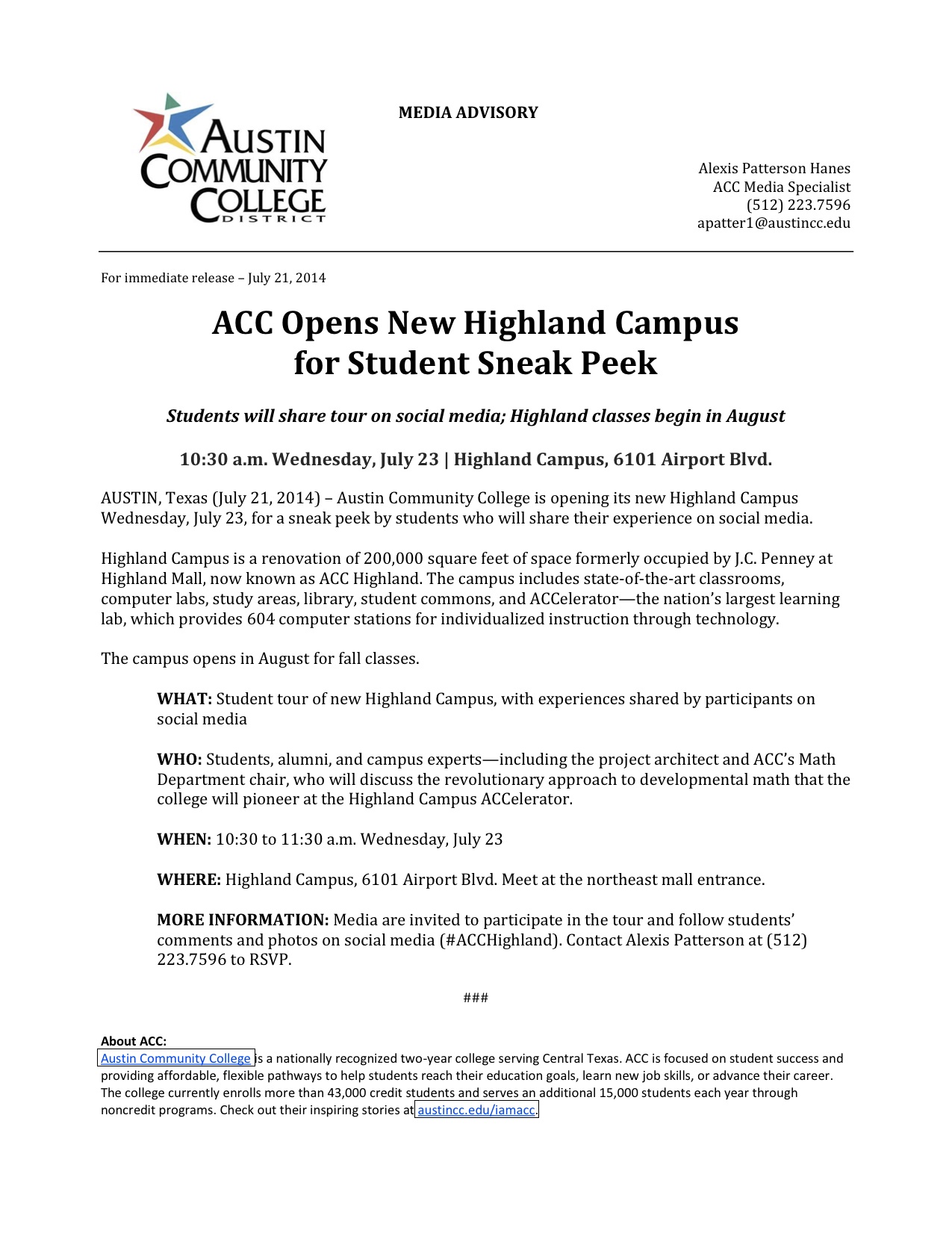 UncategorizedACC Opens New Highland Campus for Student Sneak Peek ACC Highland Campus Share this: Click to share on X (Opens in new window) X Click to share on Facebook (Opens in new window) Facebook More Click to share on Pinterest (Opens in new window) Pinterest Like Loading... Related
