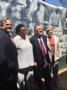 Against the backdrop of “Jackie Robinson Day,” AACHD and the Friends of Downs Field announced they had raised nearly $200,000 for improvements to Downs Field in East Austin. Raised from public and private sources, the funds will be used to implement phase I of the Baseball Legacy Project, which includes creating a new front entrance to the ballpark and a public art mural.