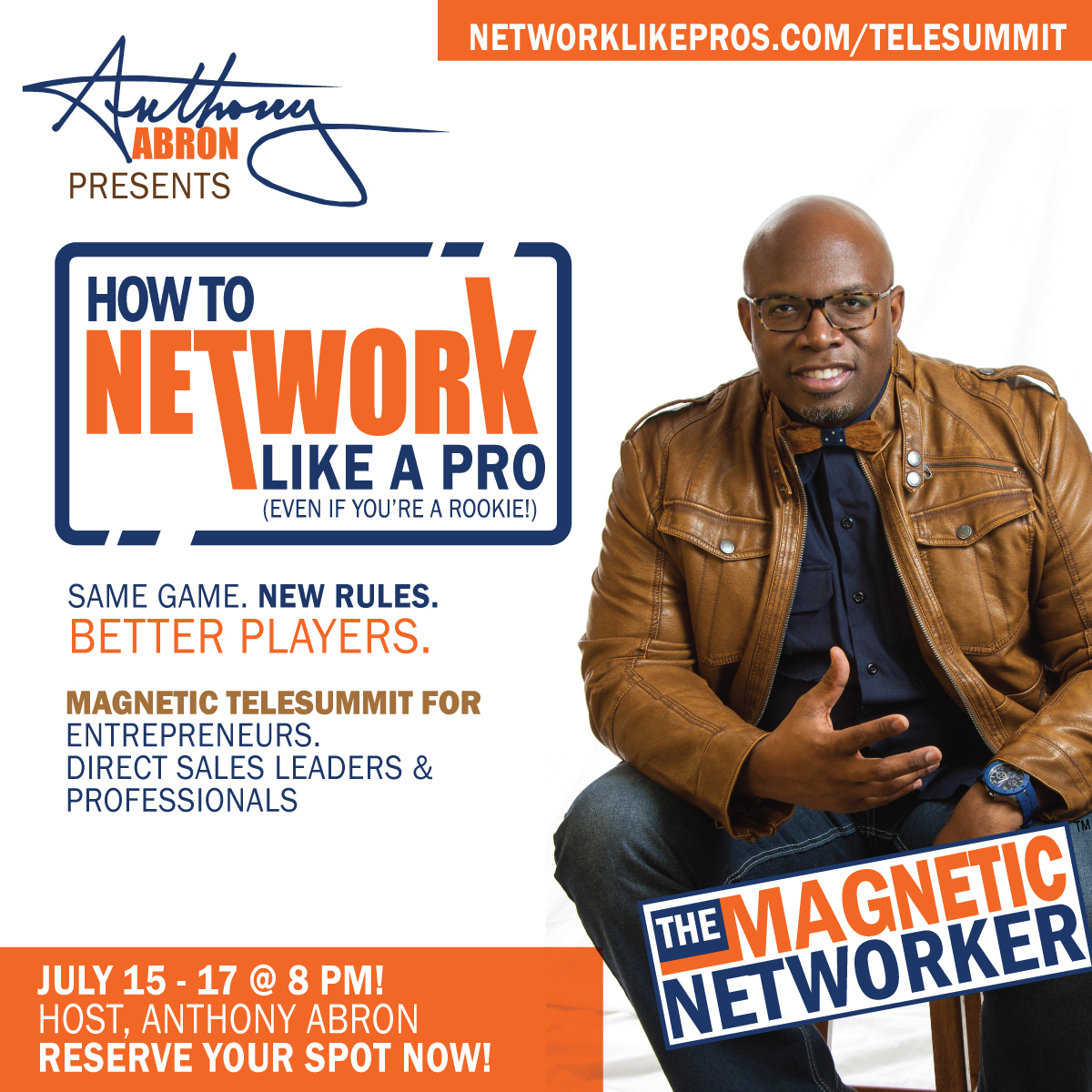 You can find Anthony Abron – The Magnetic Networker™ at https://networklikepros.com/telesummit, and Twitter @solsquad512