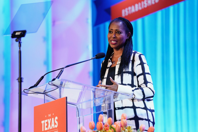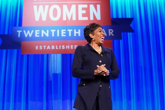 The 20th year of the Texas Conference For Women started off with a bang. The room filled to capacity and the overflow meant women standing on every piece of wall that was free.