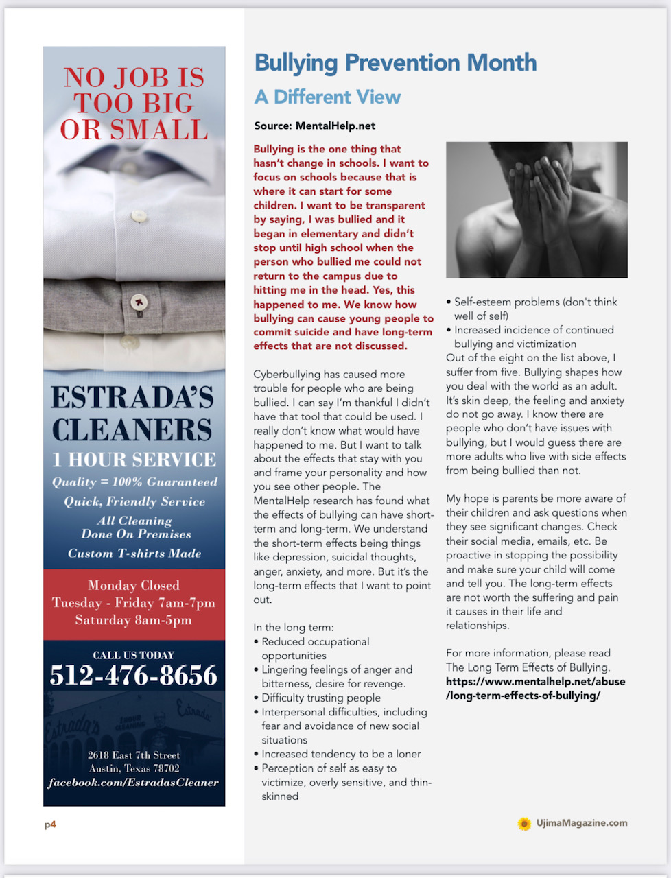 #mentalhelp #bullying #stopbullying #bullyingawareness #bullyinghurts #mentalhealth #ujimamagazine #ujimaatx #austintexas #digitalmagazine #communitymagazine #womensmagazine