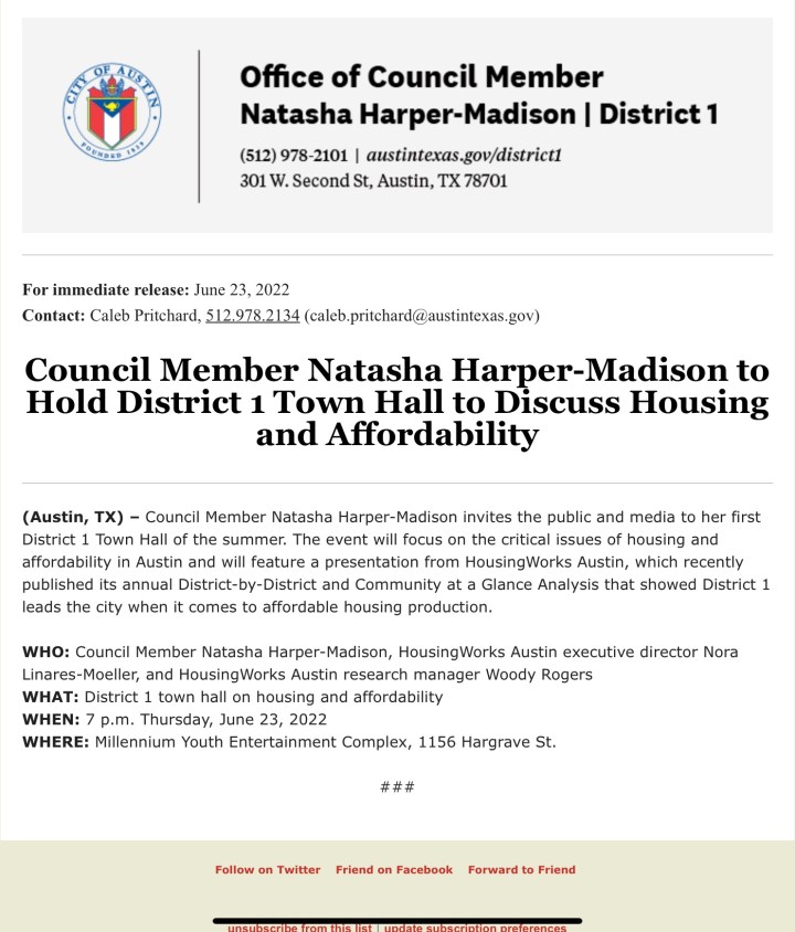 Around Town, Austin Texas, Community, Ujima Magazine, UncategorizedDistrict 1 Town Hall Meeting-Natasha Harper-Madison Share this: Click to share on X (Opens in new window) X Click to share on Facebook (Opens in new window) Facebook More Click to share on Pinterest (Opens in new window) Pinterest Like Loading... Related