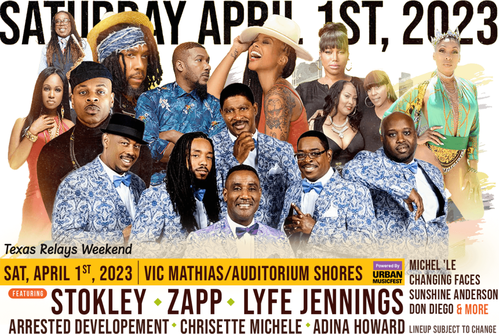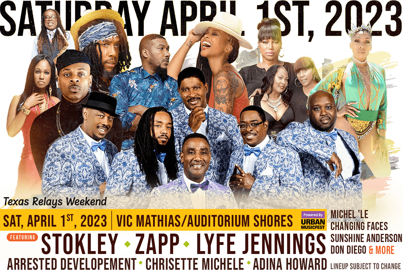 For the past 16 years, the Urban Music Fest has been the most prominent urban concert series during the Texas Relays Weekend in Austin, TX. This year will be no different, as the Festival presents Grammy-nominated Stokley lead singer of Mint Condition and electro-funk band ZAPP to headline this year’s long-awaited Festival. There will also be performances from Arrested Development and Chrisette Michelle, plus many more at Auditorium Shores at Town Lake.