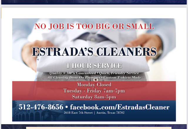 If you need a special outfit cleaned for an event or you just want your shirts and jeans looking crisp and neat, you want to go to Estrada’s Cleaners. Ask them about their Tuesday Special as well.