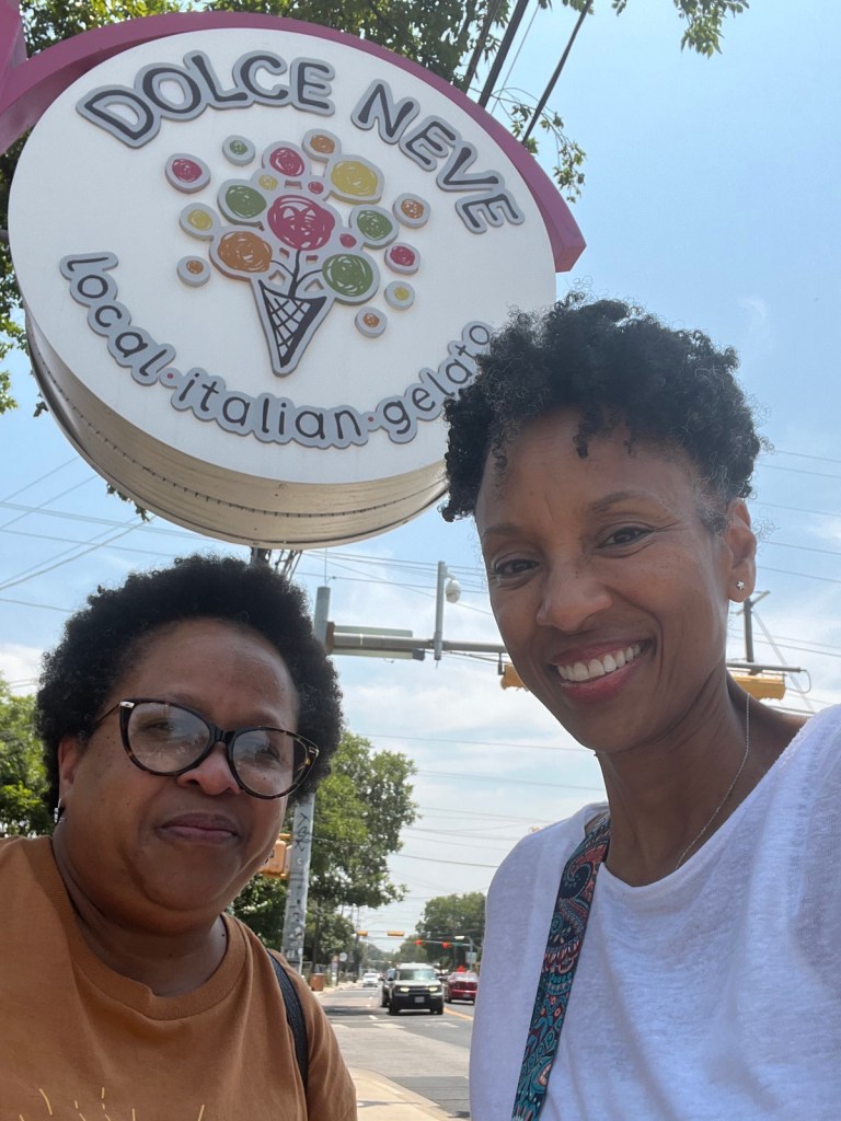 Today, being that it was 100 degrees outside, I texted my “partner in crime” Eliza and we decided ice cream would be fun. We met for Gelato which was my first time having it. We went to Dolce Neve. While cooling off we discussed Juneteenth and our feelings about the holiday. For me I remember Juneteenth as family time, a community gathering, and celebration of our freedom. It was a time you ran into people you hadn’t seen in a while and just a overall good time.