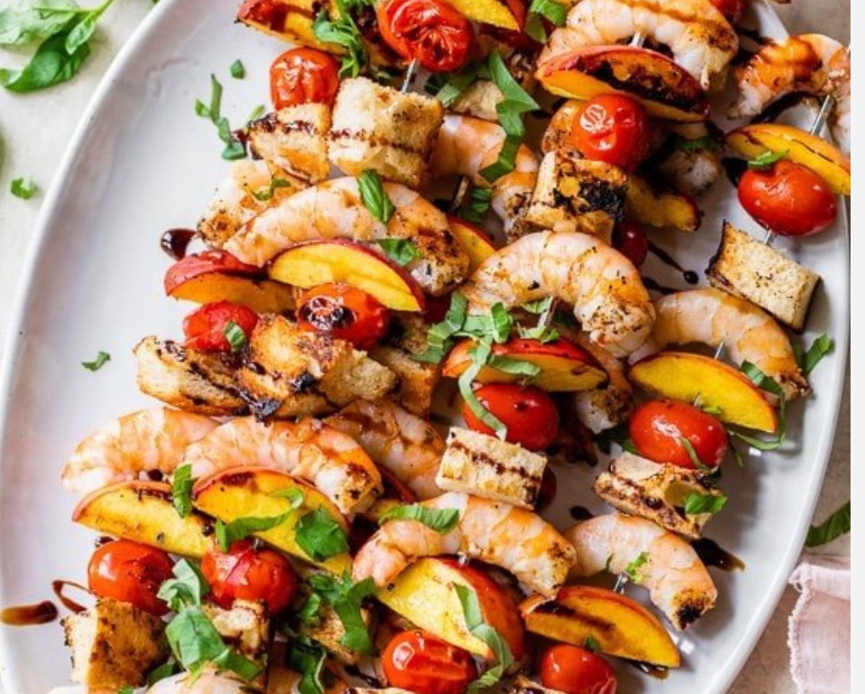 Kabobs with fresh vegetables and fruit can also be a quick summer meal. Grilled peach halves topped with ice cream is a great dessert for the whole family.