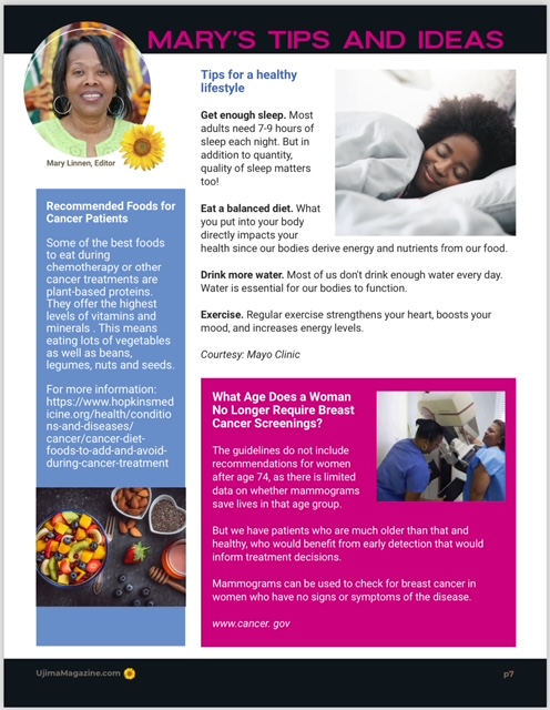 October IssueMary’s Tips and Ideas Breast Cancer Awareness Month Mary shares great tips on healthy living, food recommendations and breast cancer screenings. Check out her page. Share this: Click to share on X (Opens in new window) X Click to share on Facebook (Opens in new window) Facebook More Click to share on Pinterest (Opens in new window) Pinterest Like Loading... Related