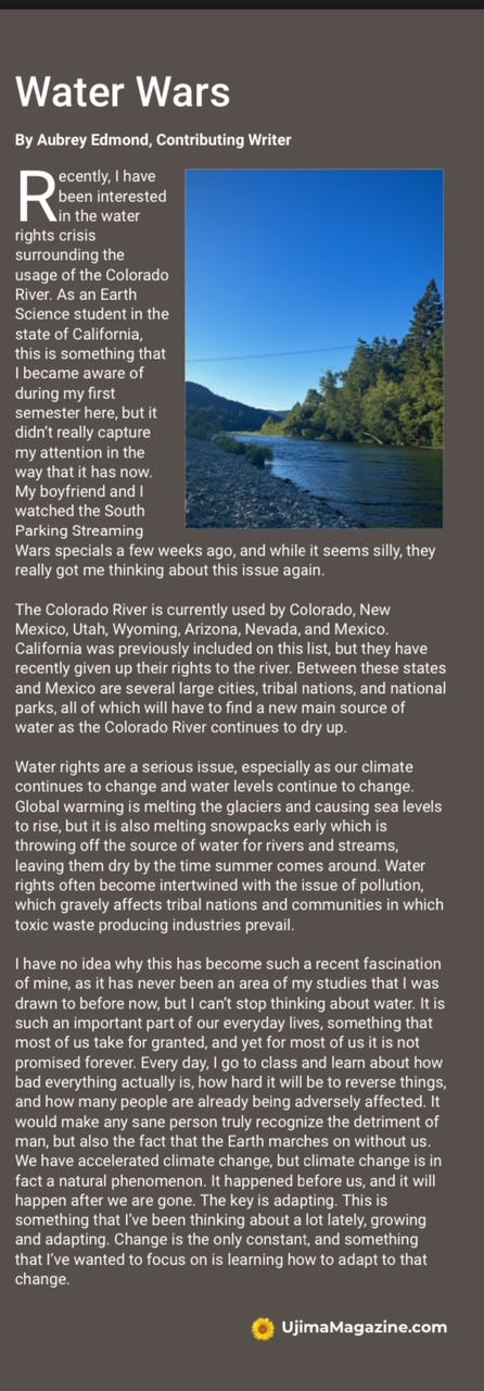 Contributing Writers, Nov-Dec IssueFinding Her Way: Water Wars Aubrey Edmond, Contributing Writer Share this: Click to share on X (Opens in new window) X Click to share on Facebook (Opens in new window) Facebook More Click to share on Pinterest (Opens in new window) Pinterest Like Loading... Related