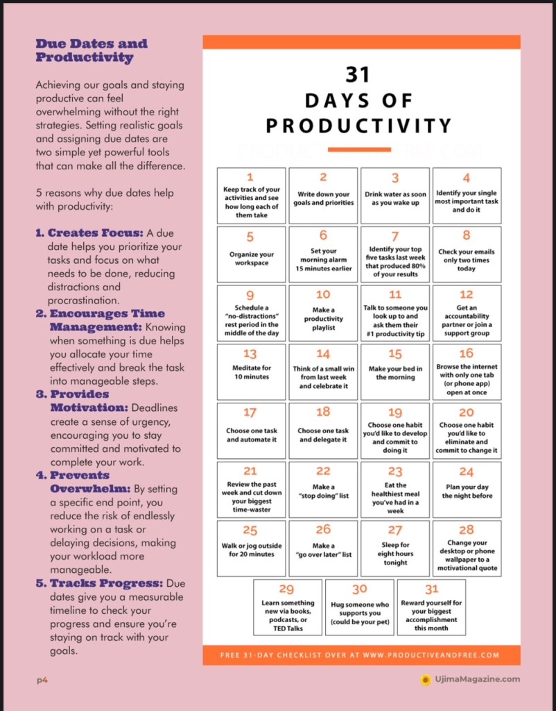 One thing good about this 31 Day of Productivity Calendar, you can adopt it any month. I will be trying it again in February.