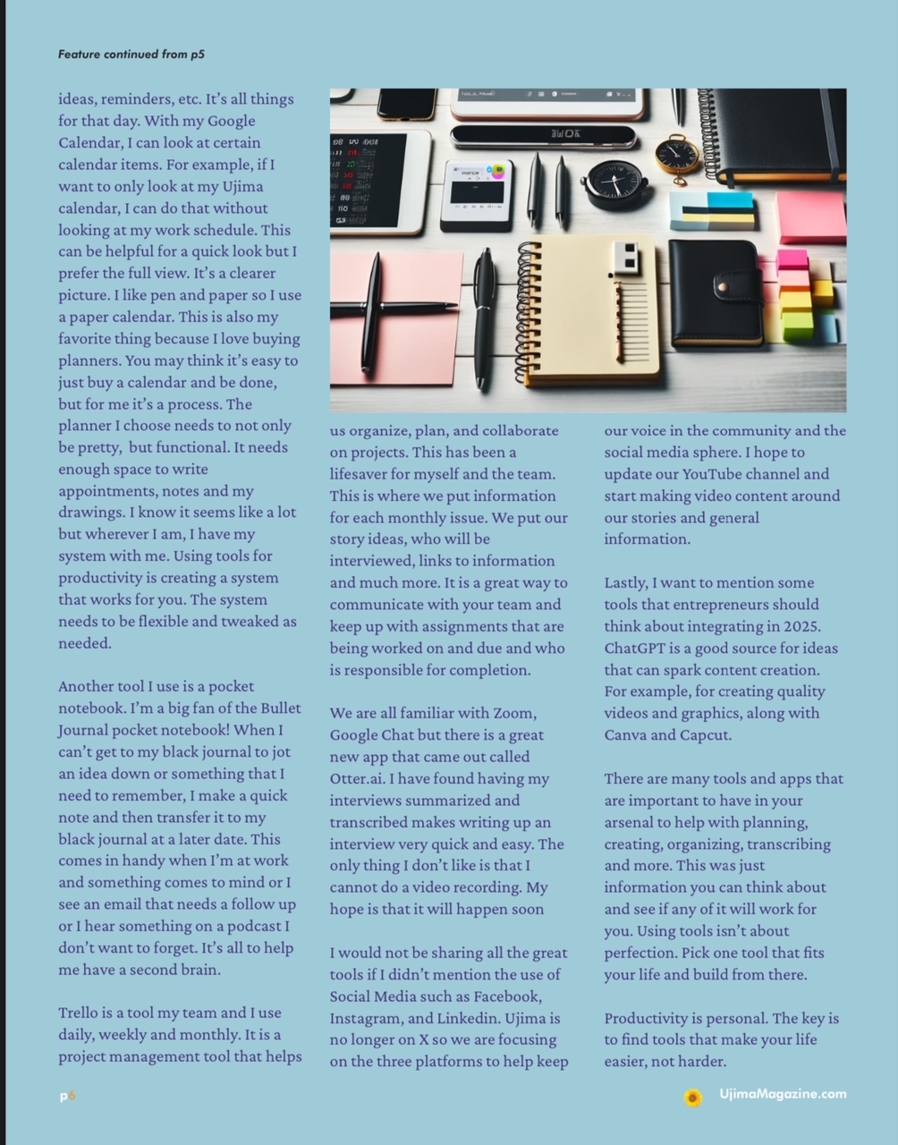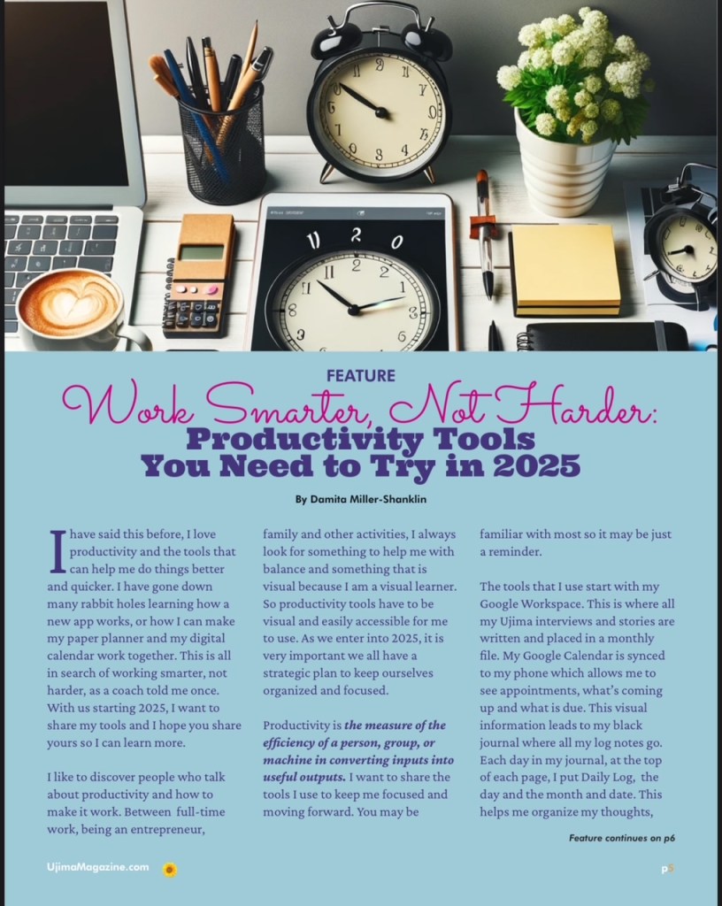 Feature Story, January IssueProductivity Tools You Need to Try in 2025 Damita Miller-Shanklin Share this: Click to share on X (Opens in new window) X Click to share on Facebook (Opens in new window) Facebook More Click to share on Pinterest (Opens in new window) Pinterest Like Loading... Related