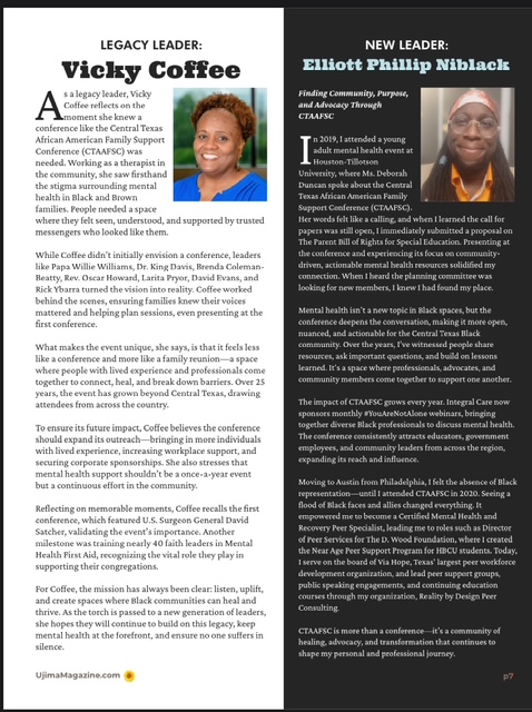 The theme for this year’s 25th Anniversary of the Central Texas African American Support Conference (CTAAFSC) is Empowering Resilience: Celebrating 25 years of Hope and Healing. The first conference of the CTAAFSC was held in November of 2000. I was working as a Service Coordinator with the Developmental Disabilities unit. It was an exciting time to see the conference come together. It has been happening once a year since that time. I was given the opportunity to speak to some of the Legacy Leaders and the New Leaders of the conference. In celebrating, I was excited to get a look into how it came together and how it is continuing to provide support to our community. The leaders featured are not all the voices and change makers but they educate all of us of how they became involved and their experience with the ongoing achievements and challenges of the conference. This is what I learned from each person.
