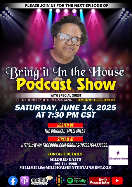 I had the opportunity to be a guest on the Bring It To The House Podcast Show. I had a great time with the host Milli Mills of Millhouse Entertainment. Please check out our conversation here. Ujima thanks Milli for having me. It felt good to talk about Ujima and share our story with the listeners.