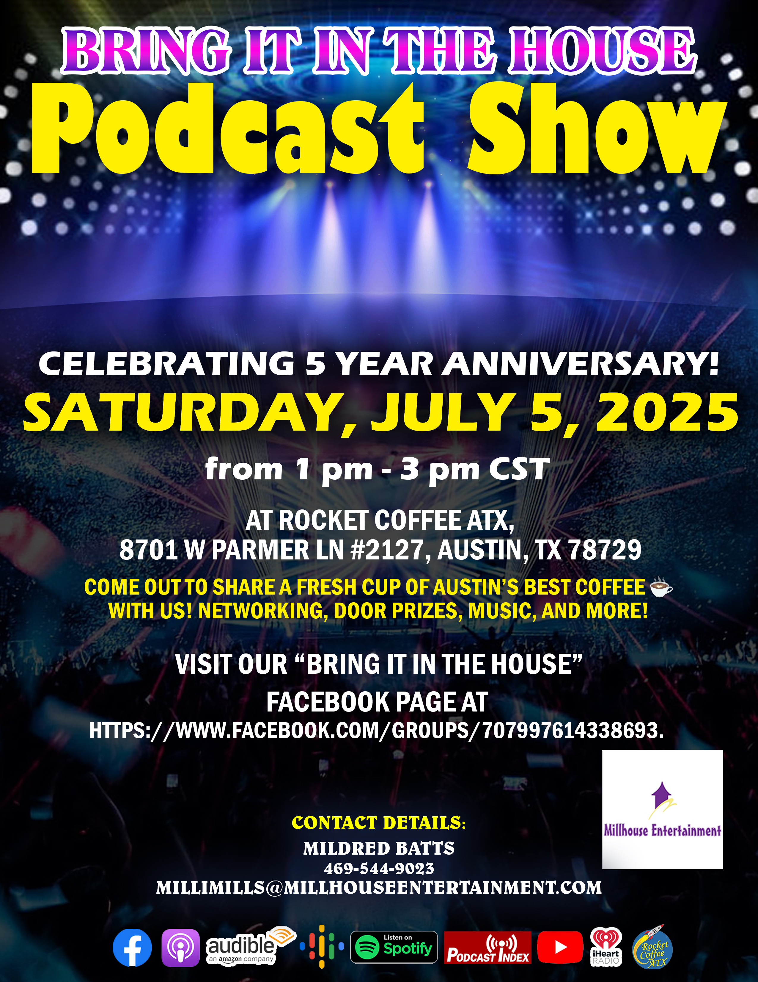 You know Milli Mills from our June-July Everyday Hero Spotlight. She is inviting Austin to her 5th Year Celebration of her Bring It In The House Podcast Show.