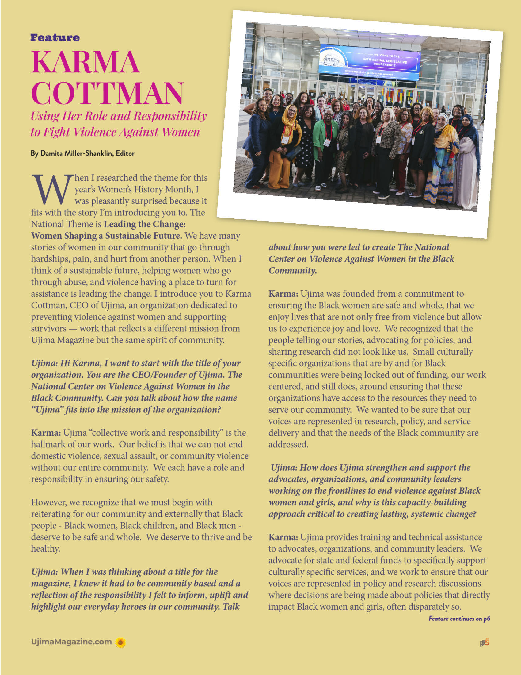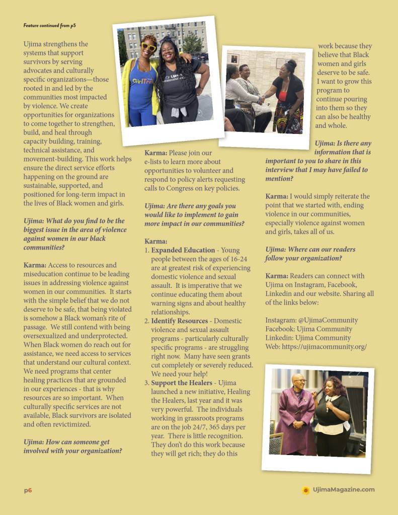 Ujima is observing Women’s Health Month. Our feature story is Karma Cottman, CEO/Founder of Ujma: The National Center on Violence Against Women In The Black Community. We hope you enjoy this issue. We will not be mad if you share the link with a friend.