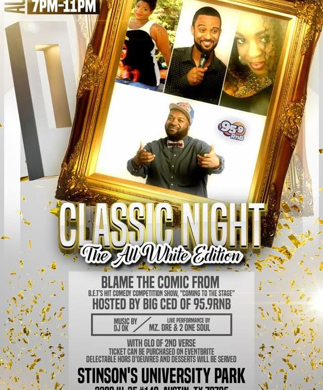 It’s time to get your flyest all white ensemble and prepare for an evening of comedy, live music, and just getting your sexy on!! This will be a classic night! Your host will the ONE and only. Fly guy with the bowties. BIG Ced of the hottest RNB station in Austin 95.9RNB. You want comedy? We got it! That’s right! From B.E.T’s hit comedy competition … Continue reading Classic Night~The All White Edition