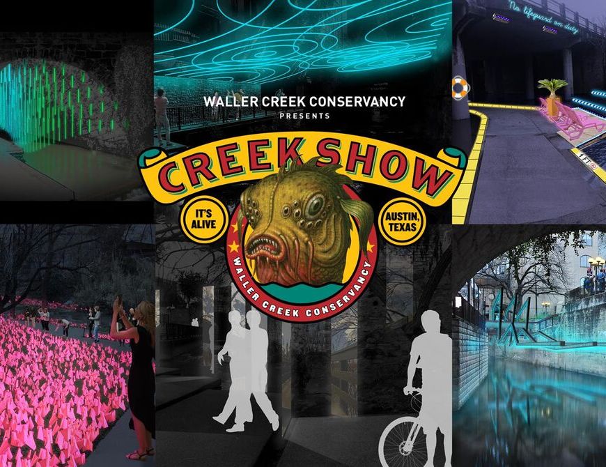 Waller Creek Conservancy announces the return of Creek Show taking place November 10-18, 2017. Free and open to the public, explore six luminescent, site-specific art installations along Waller Creek between 5th and 8th Streets, all created by local talent. Celebrate Austin Art Month Friday, November 10, with the public opening of the show including a live DJ on the creek. Participate in hands-on, family-friendly activities … Continue reading WALLER CREEK CONSERVANCY ANNOUNCES CREEK SHOW 2017 PROGRAMMING AND ARTISTS Six Austin-Based Design Teams Light Up the Night November 10-18